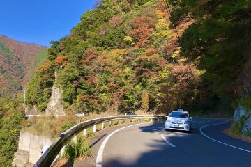細い道が続く祖谷渓谷をドライブ。プロドライバーにお任せ下さい。