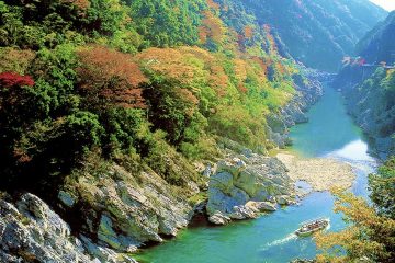 およそ2億年の時が作り上げた峡谷はとても深く、見上げる景色が最高です。絶対流れるべし。船頭さんのガイド付き。